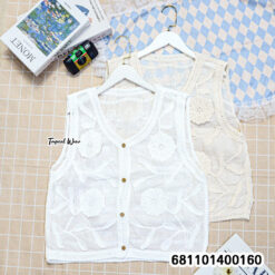 เสื้อกั๊กลูกไม้ลายดอก สไตล์โบโฮ เหมาะกับลุคซัมเมอร์ ออกแบบด้วยลูกไม้โปร่งบาง เบาสบาย ใส่ง่าย ช่วยเพิ่มเสน่ห์ให้การแต่งตัว จะใส่เดี่ยวหรือเลเยอร์กับเสื้อยืด เดรส หรือบิกินี่ก็ดูดี เหมาะทั้งวันเที่ยว ชายหาด และลุคชิล ๆ ในวันสบาย