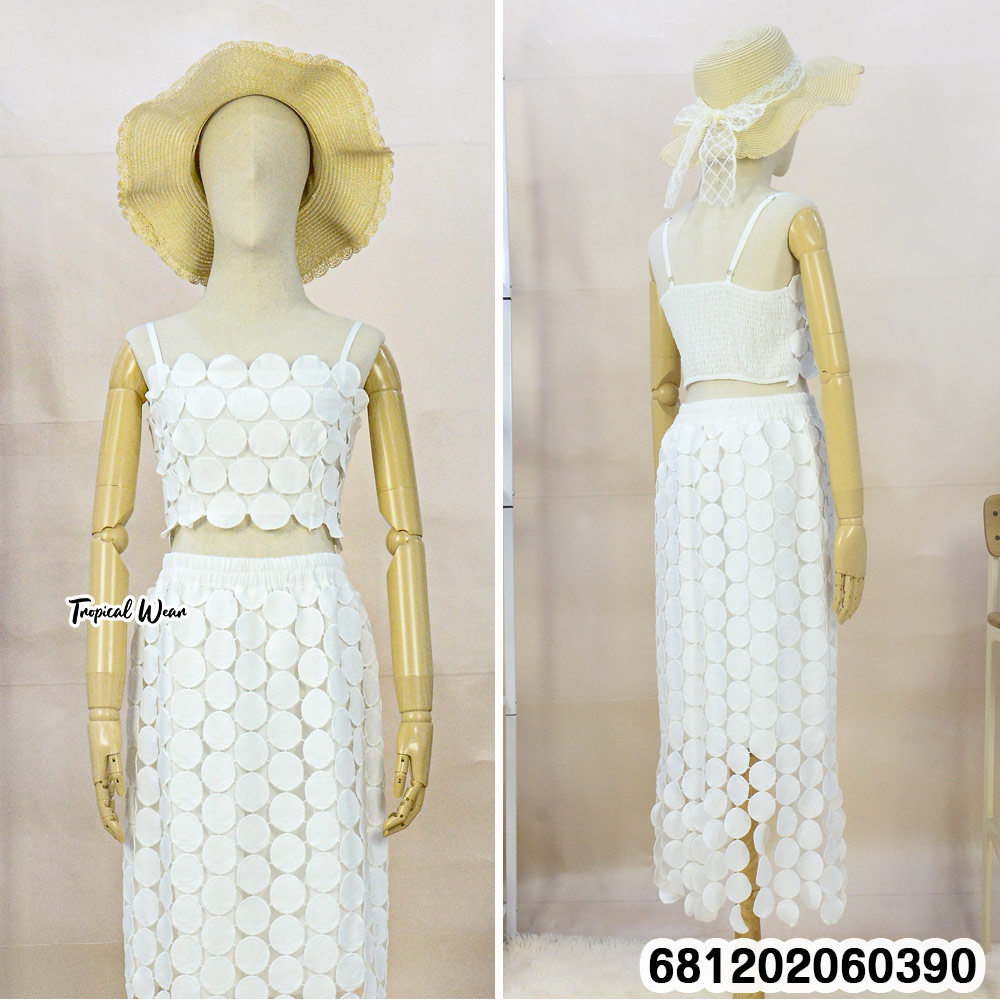 ชุดเซ็ตลายวงกลมสีขาว ดีไซน์โดดเด่น ให้ลุคชิคและทันสมัย เสื้อครอปใส่สบาย แมตช์กับกระโปรงยาวเอวยาง ช่วยให้เคลื่อนไหวสะดวก เหมาะสำหรับใส่เที่ยว วันสบายๆ หรือแต่งลุคซัมเมอร์–รีสอร์ท ถ่ายรูปสวย ดูมีสไตล์แบบไม่ต้องแต่งเยอะ