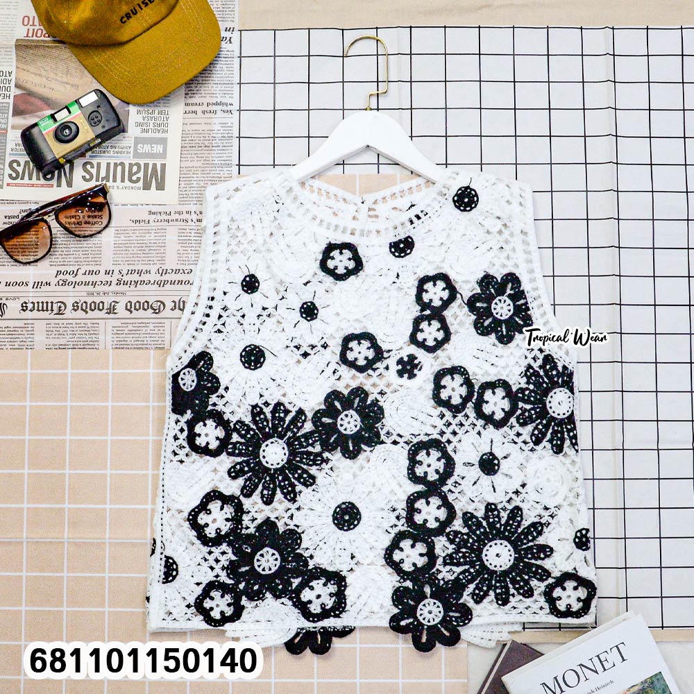 Black & White Flower Crochet Blouse – เสื้อลายดอกโครเชต์ขาวดำ-681101150140
