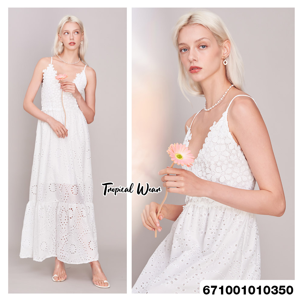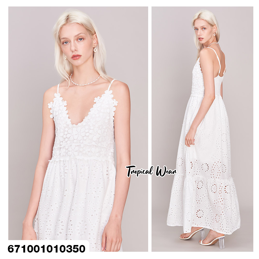 Maxi Dress เดรสสายเดี่ยว ปักดอกไม้น่ารัก – 671001010350