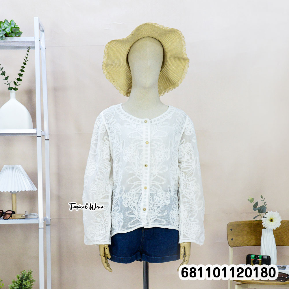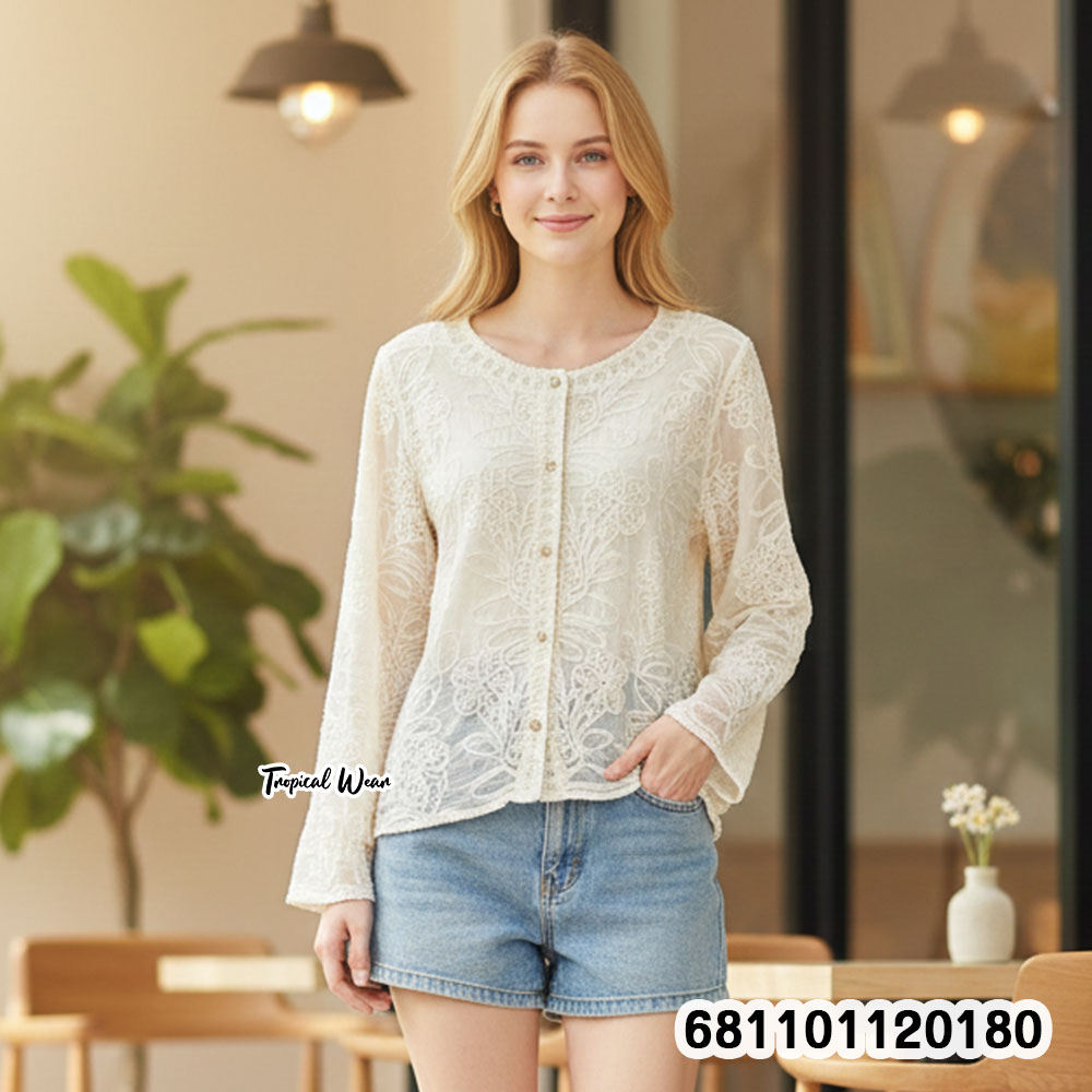 เสื้อคลุมลูกไม้ลายดอกดีเทลสวยหวาน งานซีทรูบางเบาใส่สบาย เหมาะสำหรับใส่คลุมเสริมลุคให้ดูเรียบหรูหรือแต่งสไตล์บาหลี ด้านหน้าติดกระดุมให้ลุคสุภาพแมตช์ง่ายกับทุกชุด